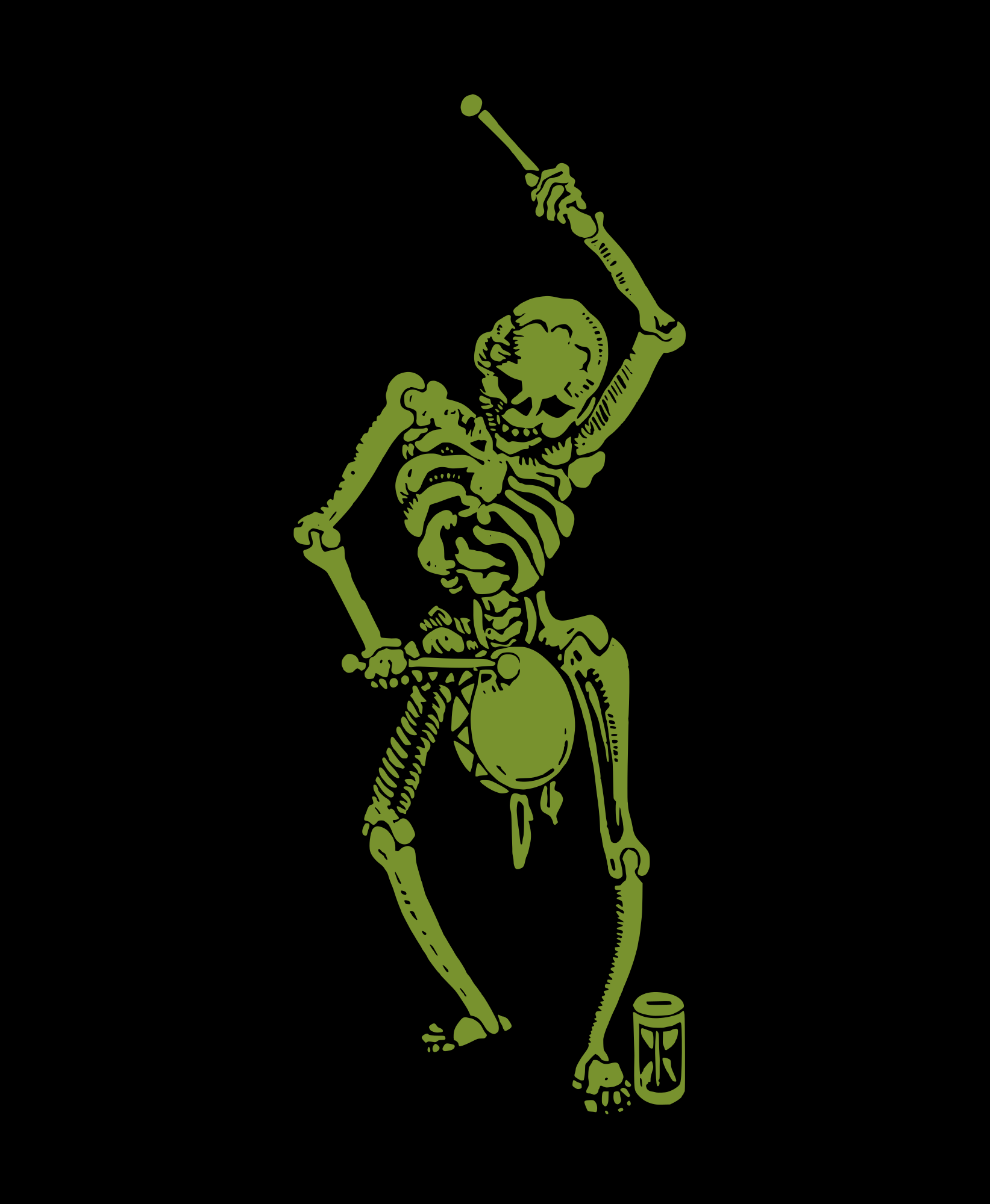 skeleton dancing with a drum ... this is a green version