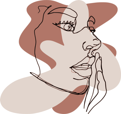 Minimal modern art line drawing of a woman touching her face