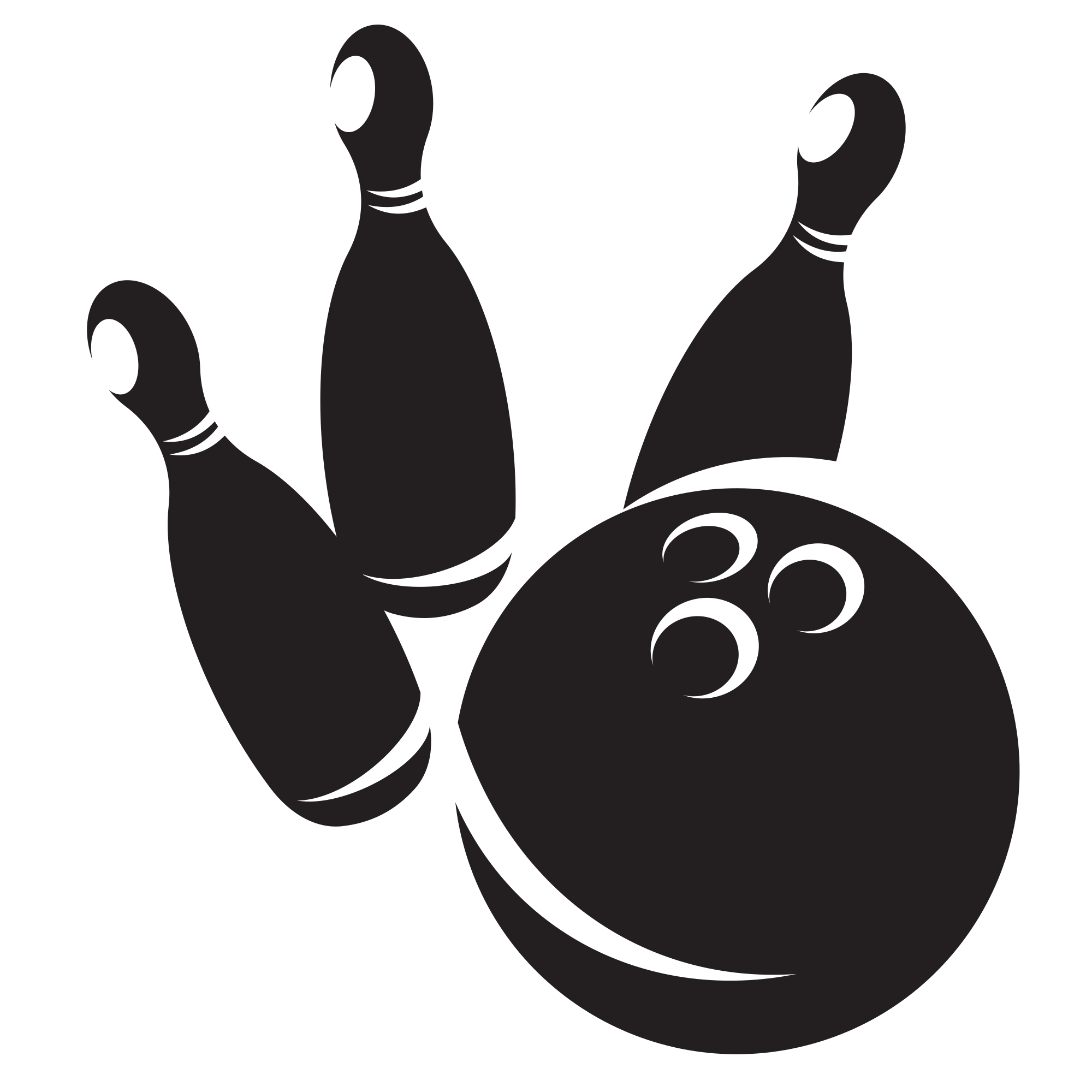 Bowling pins and a ball silhouette