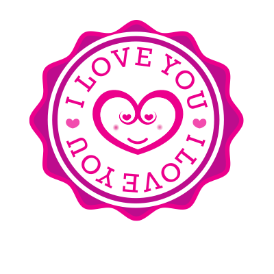 Pink sticker with text "I love you".