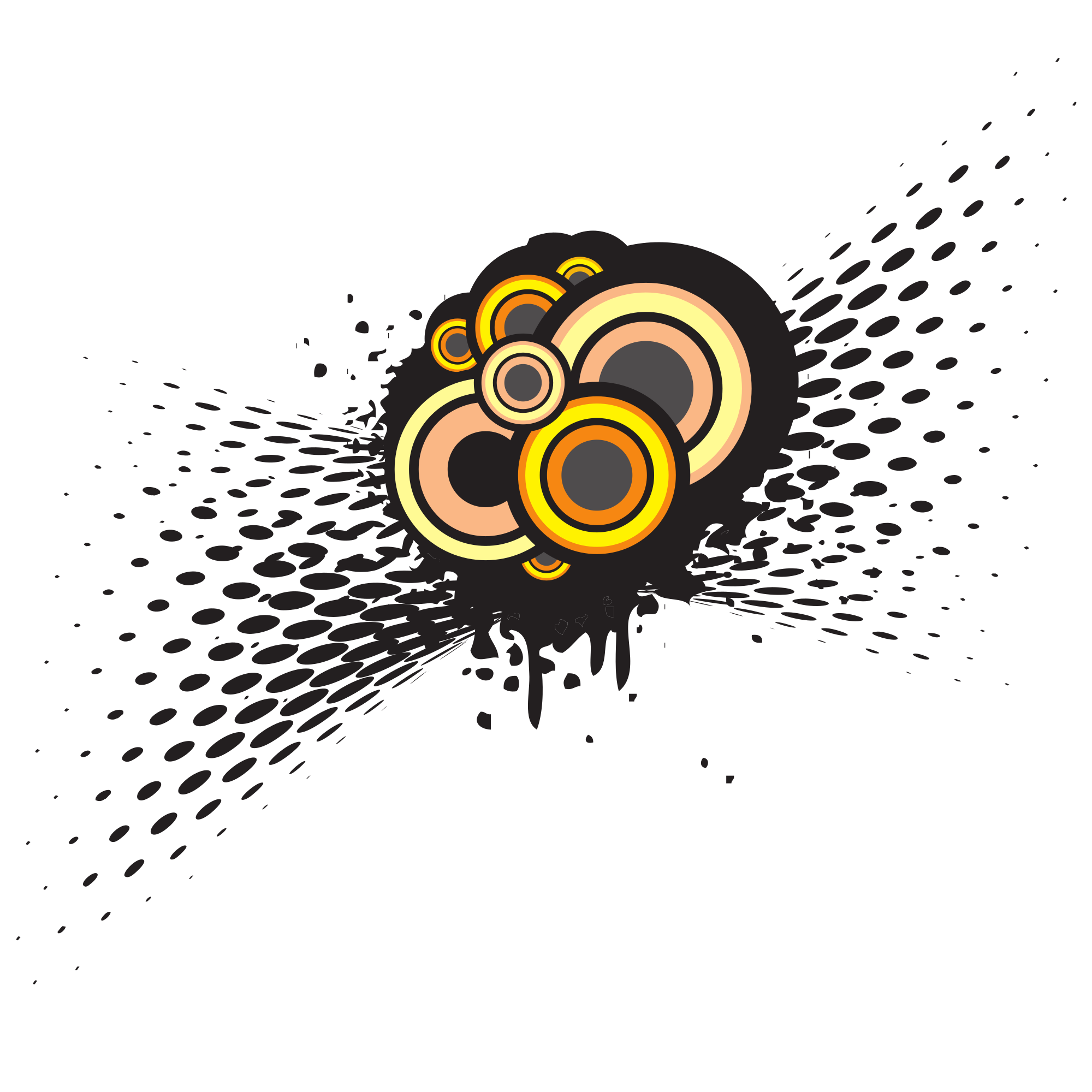 Yellow circles with halftone design and black dripping ink.