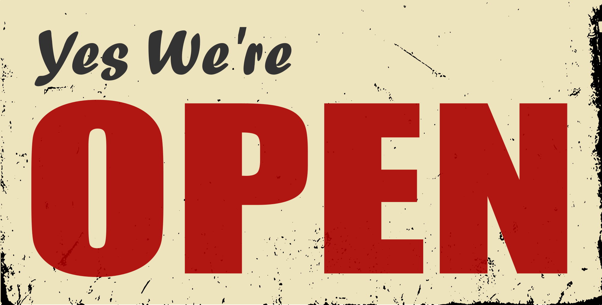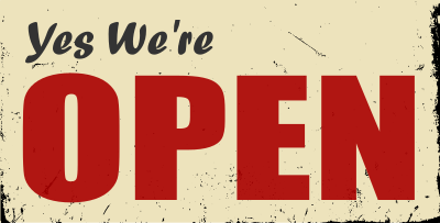 Open sign saying "Yes We re Open".