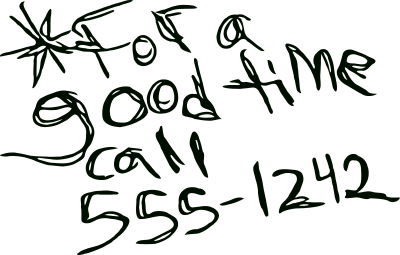 this is classic public bathroom graffiti (of course the number is fake!)