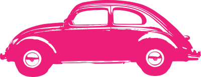 Vintage hot pink Volkswagen beetle car graphic.