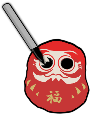 this is a Japanese superstition where you draw one eye and make a wish and when you get the wish you are suppose to draw the other eye