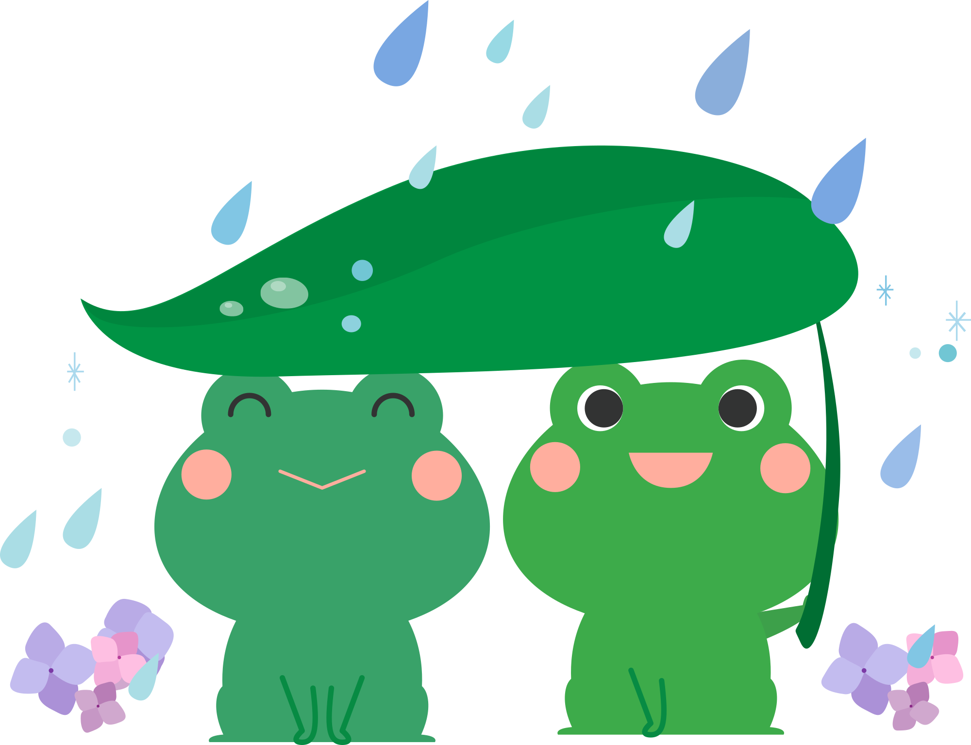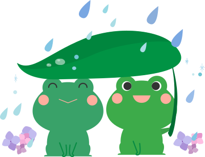 - 梅雨 rainy+season frog frogs fuki June rain raining rainy cartoon couple happy gahag hydrangea Japan kawaii Anthropomorphized+Animals