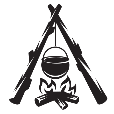 - cooking pot bonfire fire food camping silhouette monochrome campfire