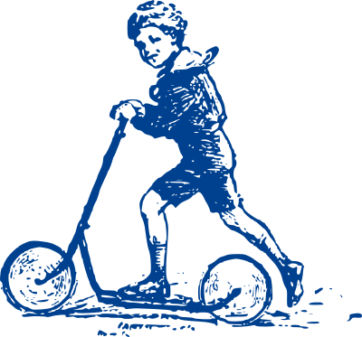 a blue boy on a scooter