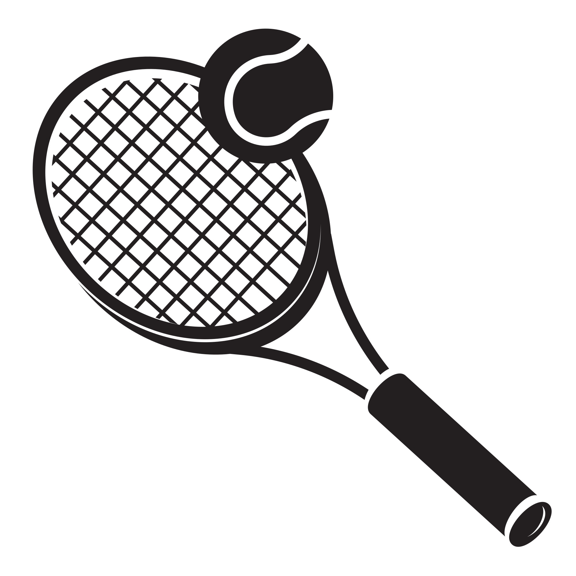 Silhouette of a tennis racket and ball.Originally published by Freesvg.org
