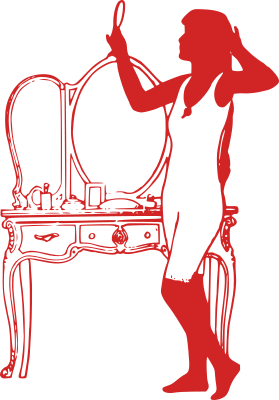 classic vintage woman girl female standing red outline basic long+johns pajamas underwear mirror undress