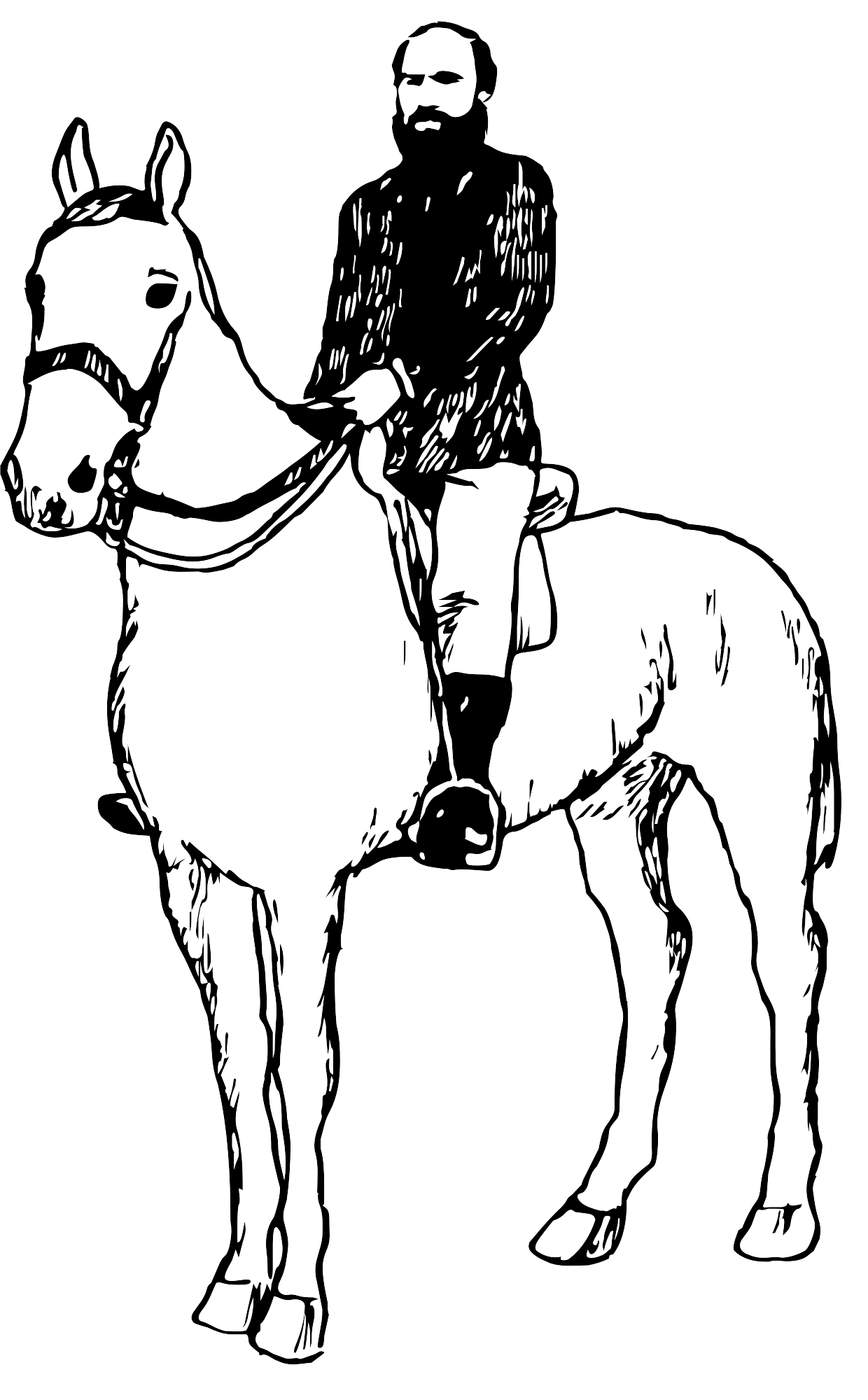 Black and white pic of man on a horse