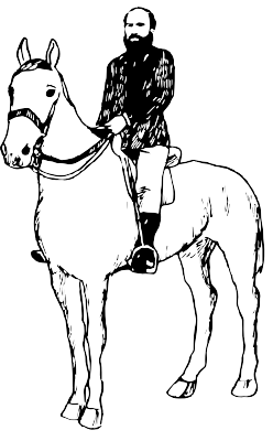 A picture of a man on a horse in colonial days in New Zealand