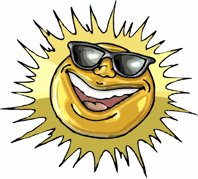 A cartoon of the sun shining with sunglasses on