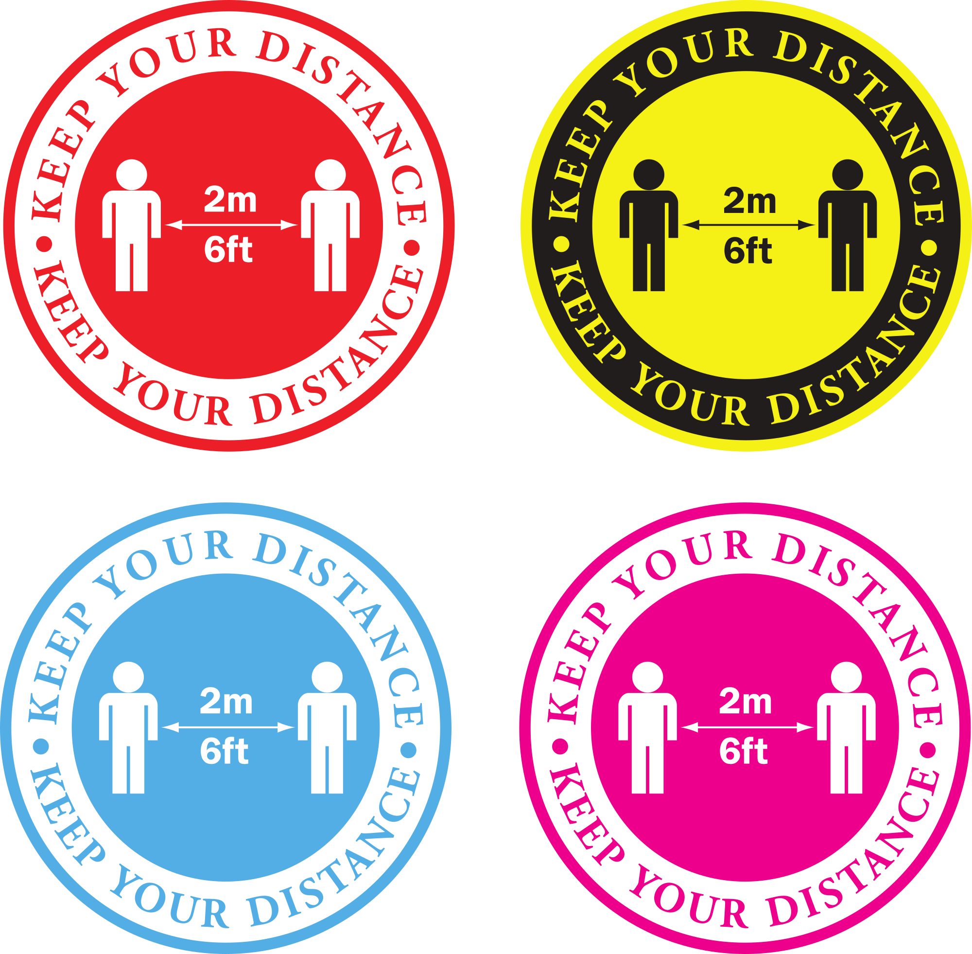 Keep your distance warning signs in different colours.