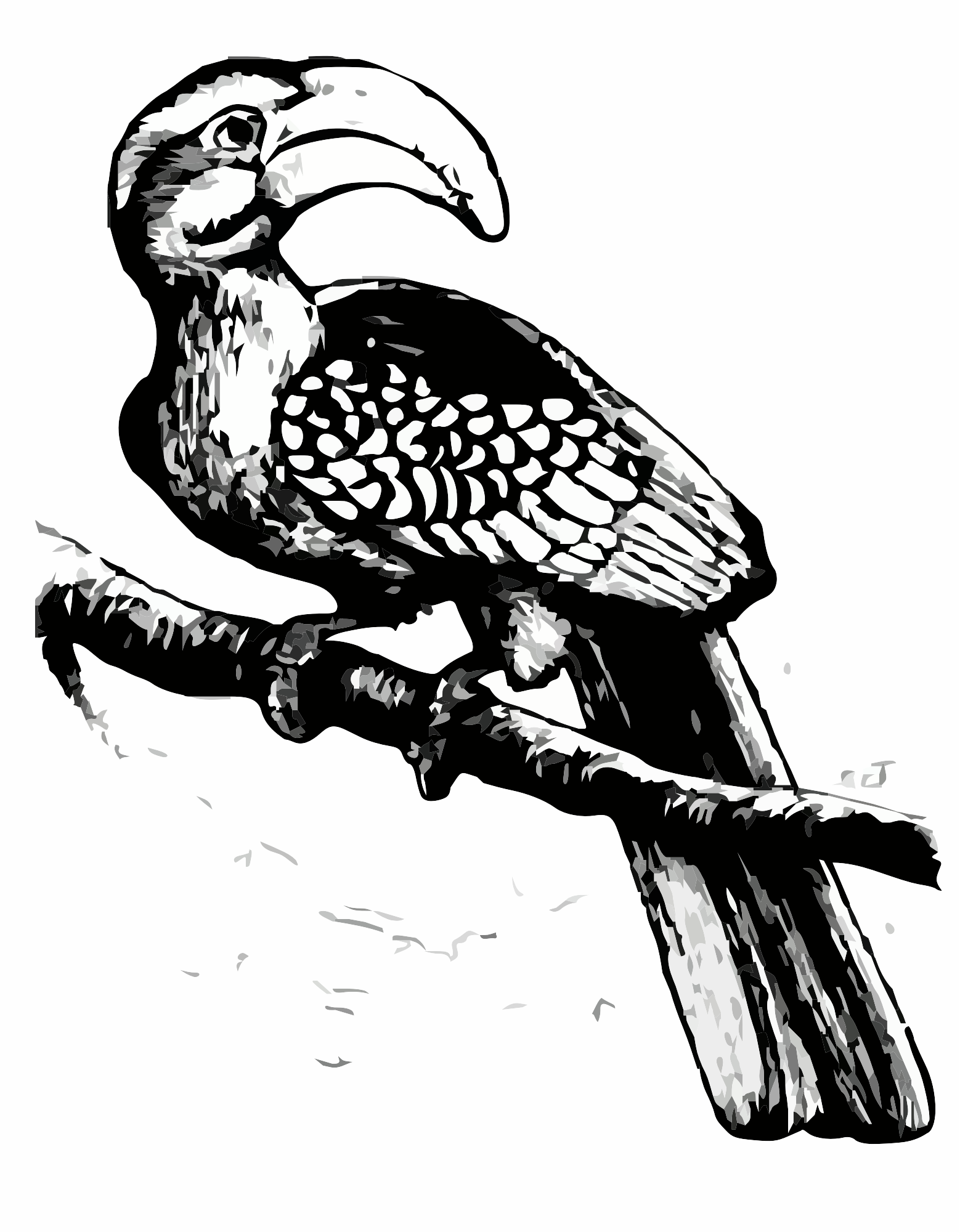 A Line drawing of a Horn Bill Bird from Africa