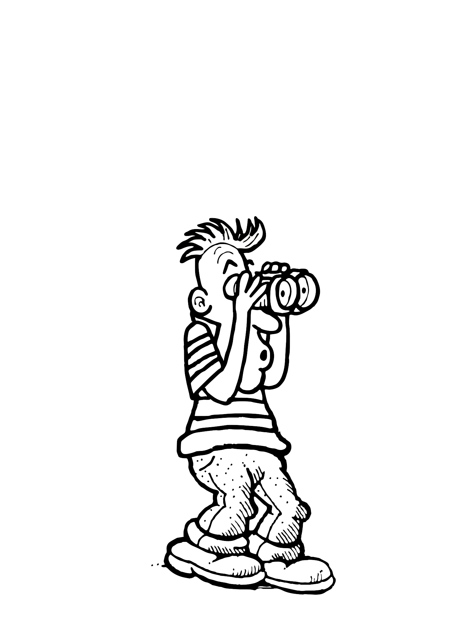 A cartoon of a man with binoculars