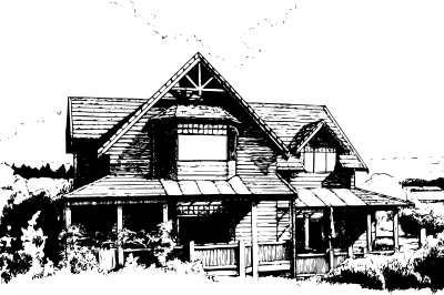 - wooden House line drawing b-w