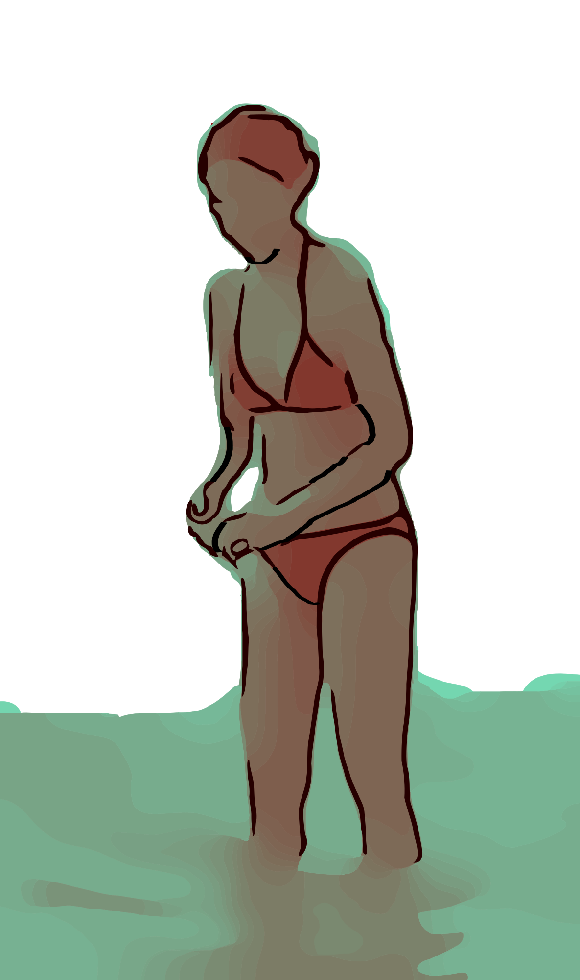 a simple clipart of a woman enjoying summer at the beach -- red version
