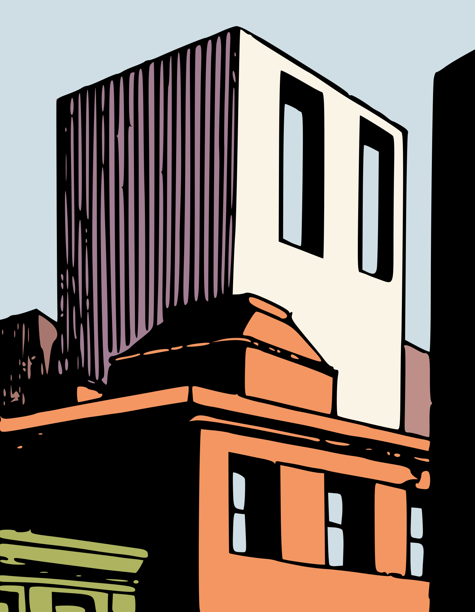 Futuristic building traced from https://comicbookplus.com/?dlid=70281