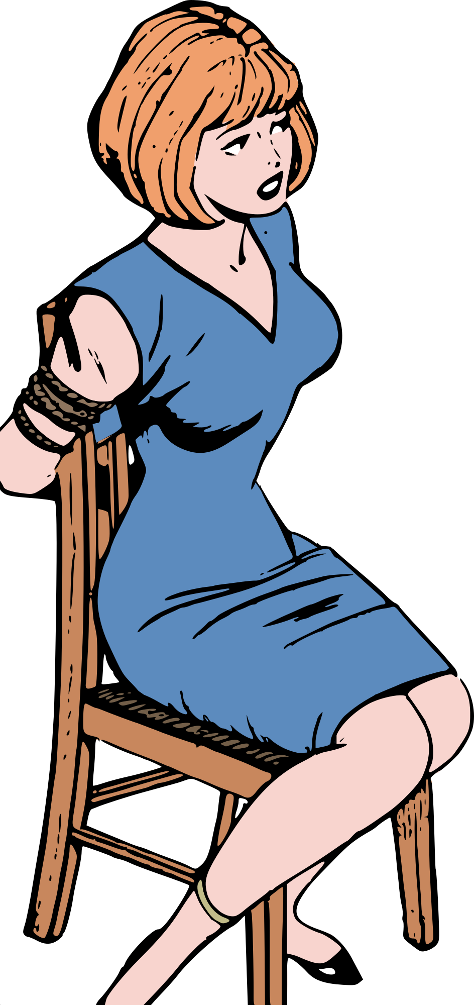 Woman tied to chair traced from https://comicbookplus.com/?dlid=70262