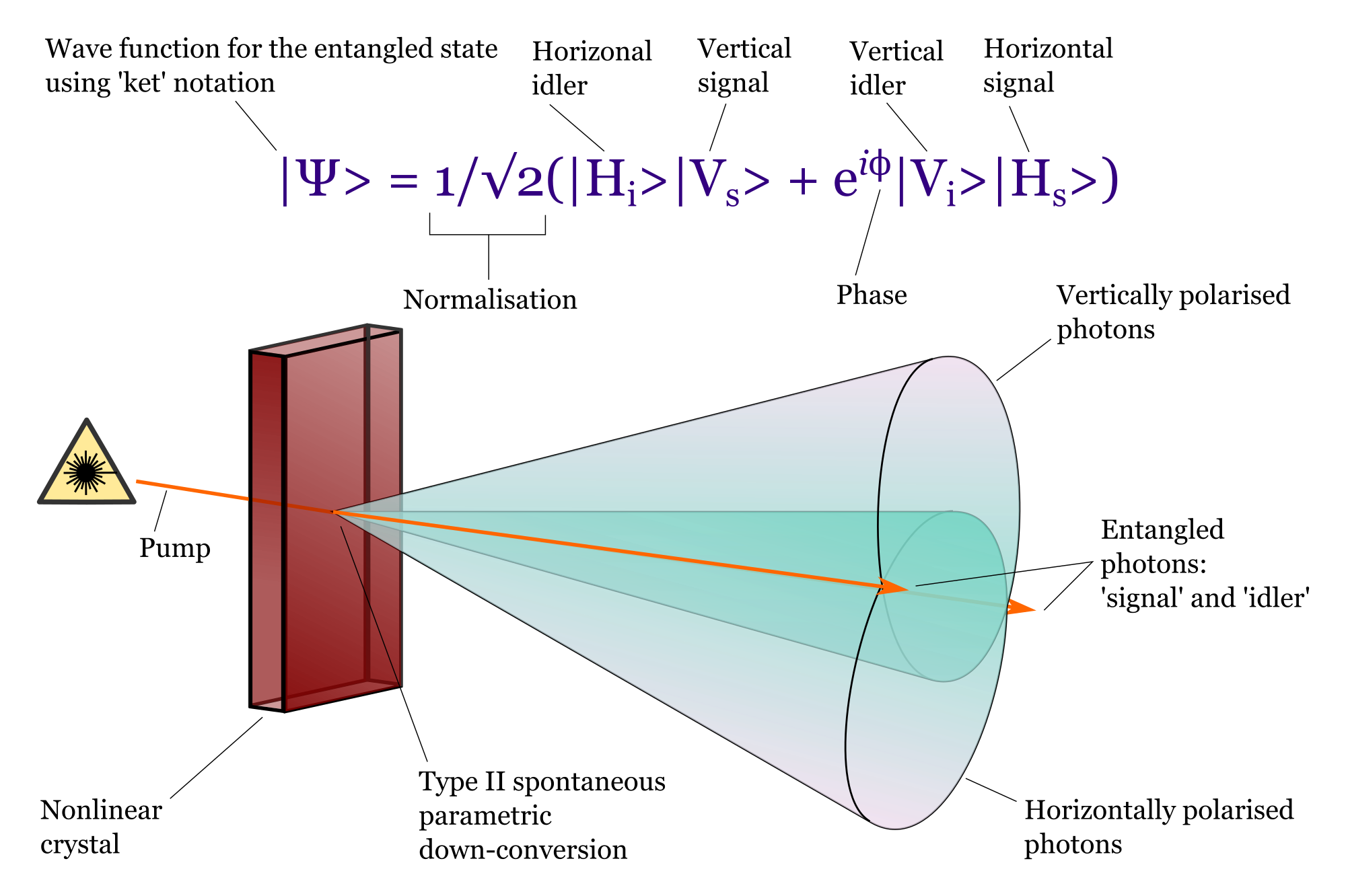 - wave function SPDC entangle photon entanglement