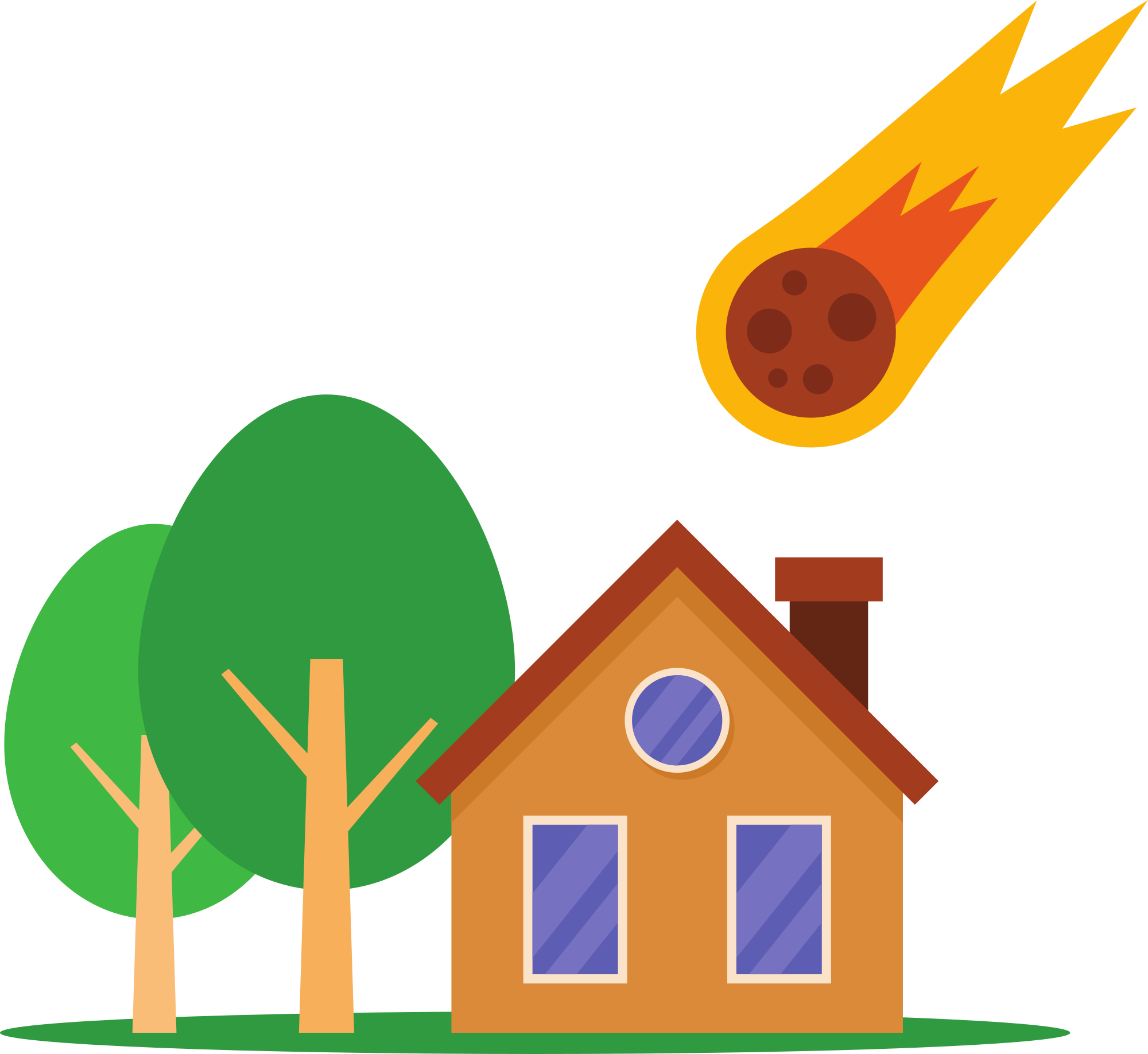 Illustration of a meteorite hitting a house taken from: https://publicdomainvectors.org/en/free-clipart/Meteorite-falling-on-Earth/85477.html