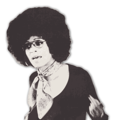This is the one and only Angela Davis (political activist and author and academic etc) depicted in 1976 from a public domain source. I gave it a pop out cut out look for fun.