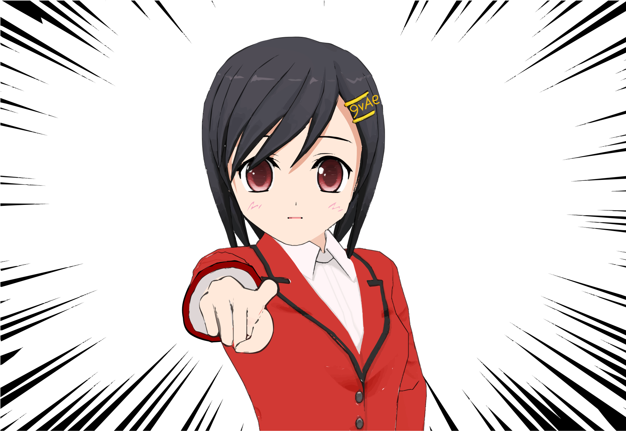 An anime girl pointing to you who speaks "AIUEO".