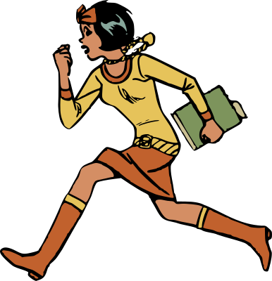 Teen girl running to school.