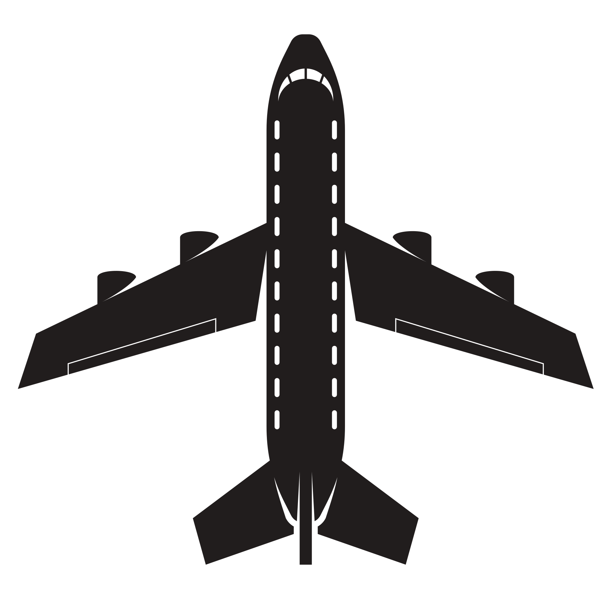 Silhouette of a passenger aircraft.
