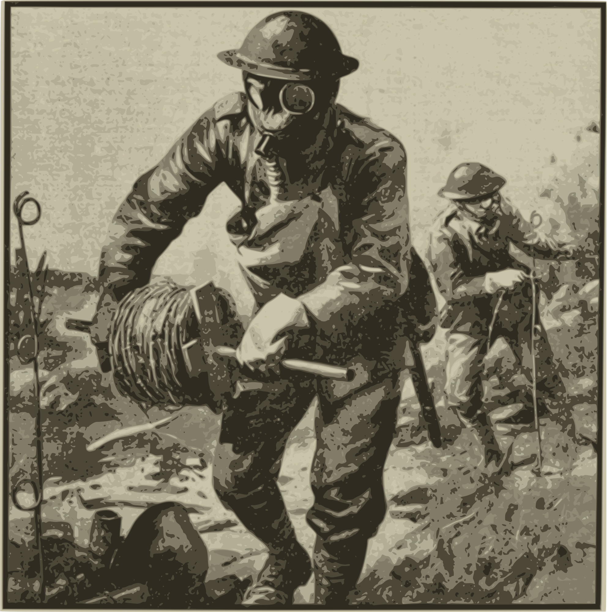 - solider gas+mask mask war world+war+1 ww1 fight battle 1917 vintage foxhole barbed+wire