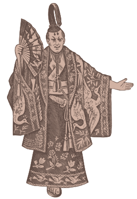 - mikado kimono 1886 vintage retro Western idea stereotype Japan Japanese traditional clothes outfit man standing
