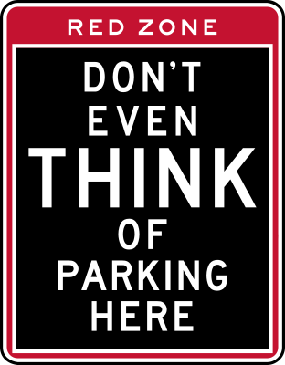 - no+parking prohibited prohibit parking red+zone sign caution warning cheeky funny American