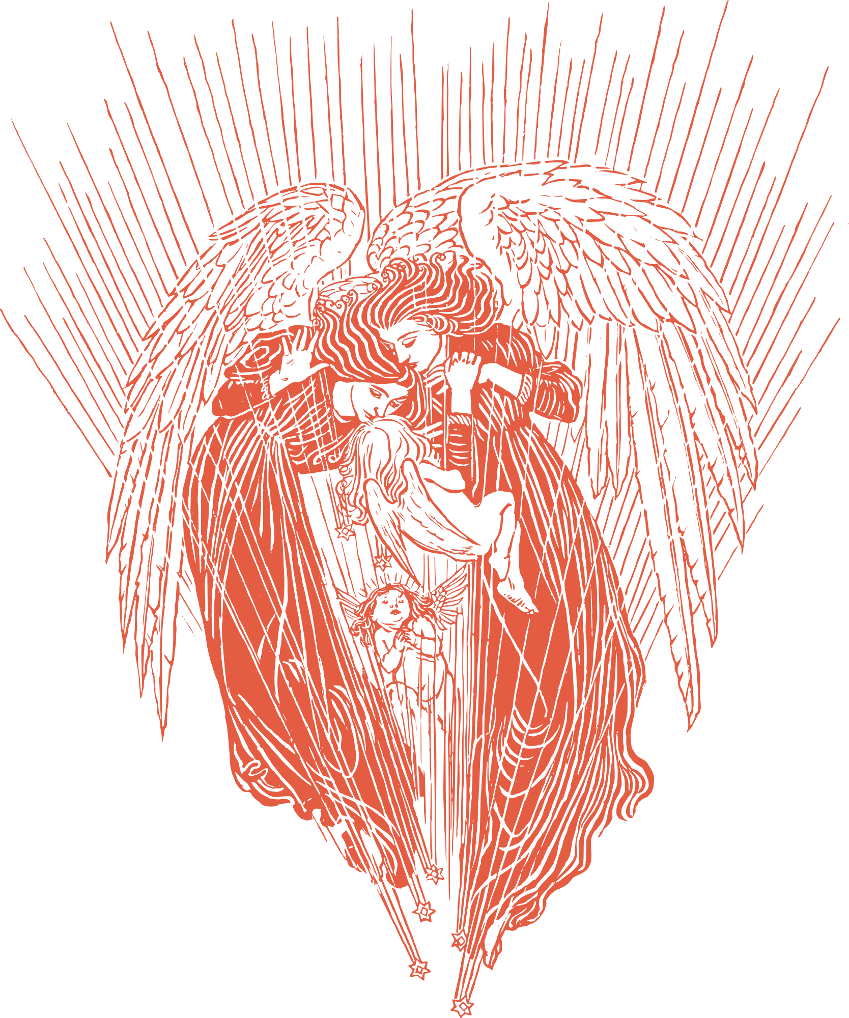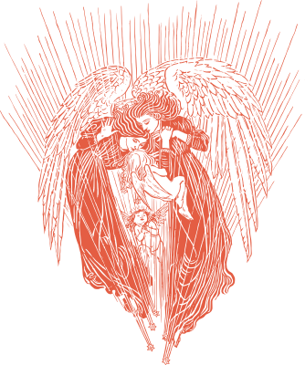 two angels interlocked with babies