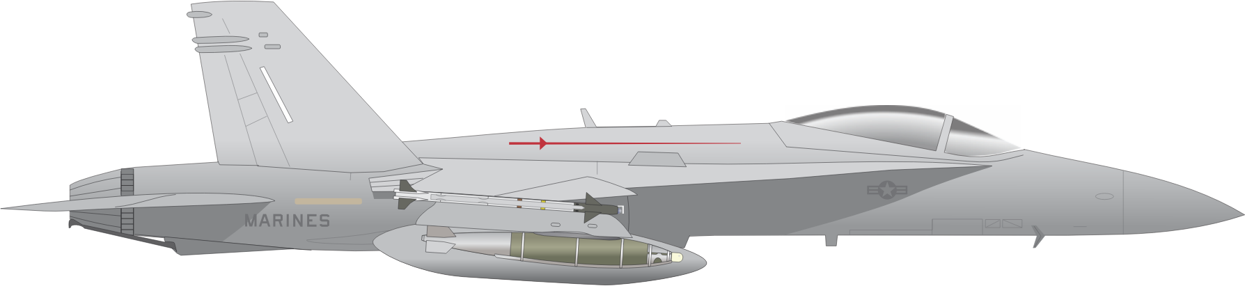 U.S. Marine Corps F/A-18 Hornet assigned to Marine Fighter Attack Squadron Three Fourteen (VMFA-314), the "Black Knights", based at Marine Corps Air Station Miramar, California. In 2020, VMFA-314 will transition to the F-35C Lightning II Joint Strike Fighter. The image was extracted from an official U.S. Navy publication and therefore is in the public domain.