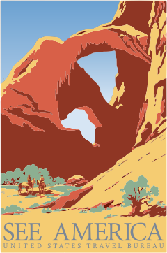 "See America", a U.S. Travel Bureau poster created by the Works Progress Administration. As a product of a U.S. Government employee, this work is automatically in the public domain.