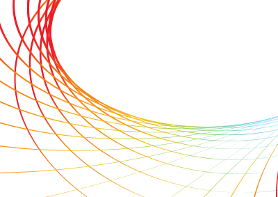 Wavy coloured lines on white background.