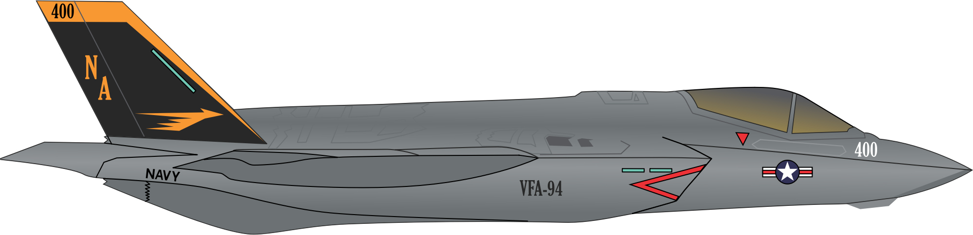 U.S. Navy F-35C Lightning II joint strike fighter aircraft assigned to Strike Fighter Squadron Ninety Four (VFA-94), the "Mighty Shrikes", based at at Naval Air Station Lemoore, California. The image was extracted from an official U.S. Navy publication and therefore is in the public domain.
