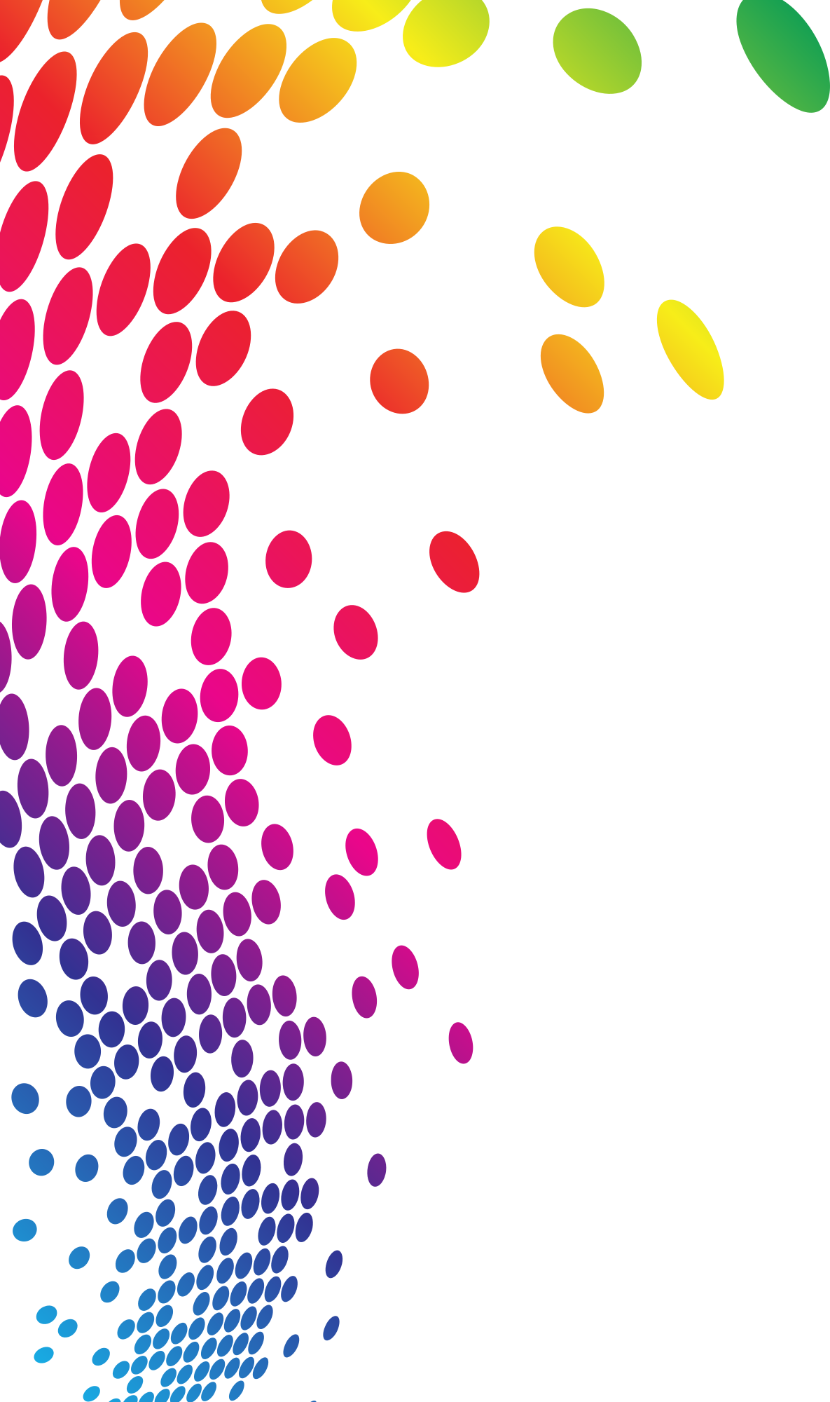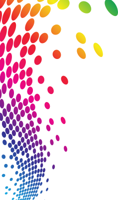 White background with halftone dots in rainbow colours.