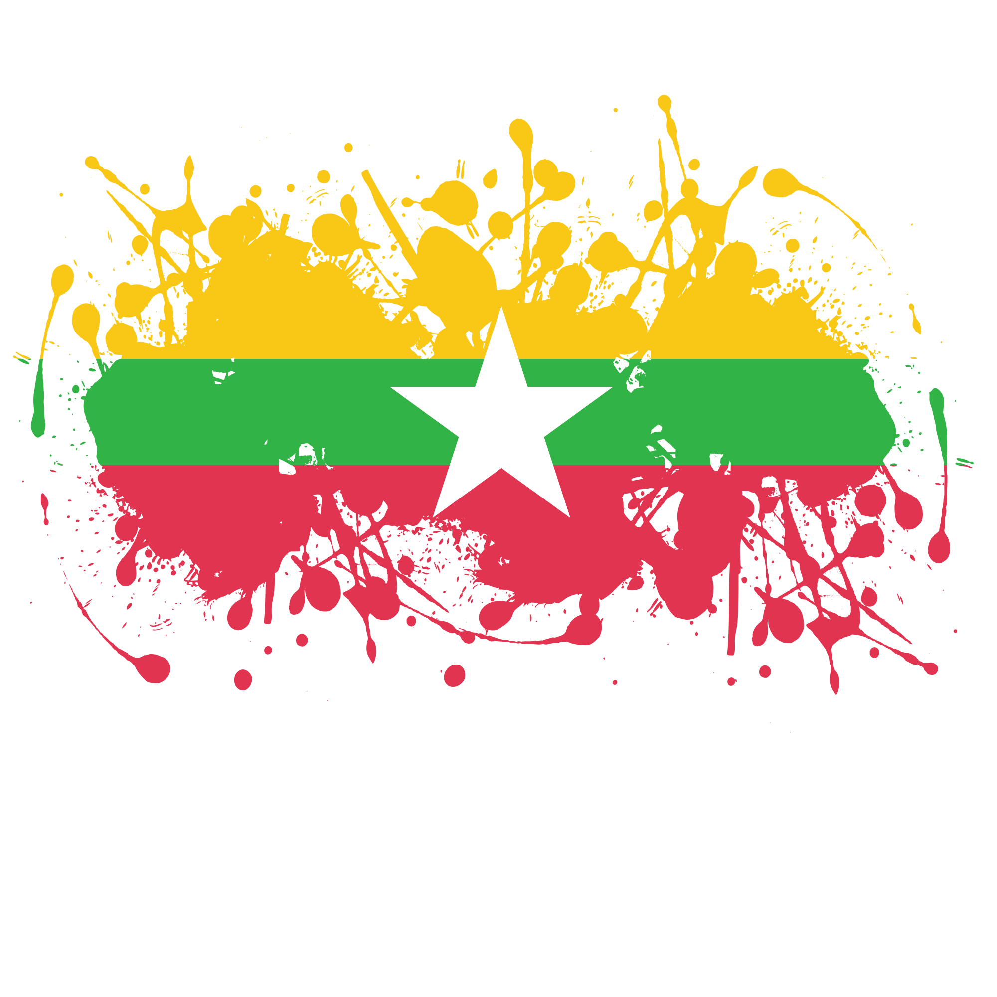 Myanmar flag ink splatter