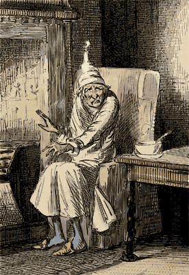 - Scrooge Christmas carol story man old grumpy 1843 spirit holiday humbug nightcap