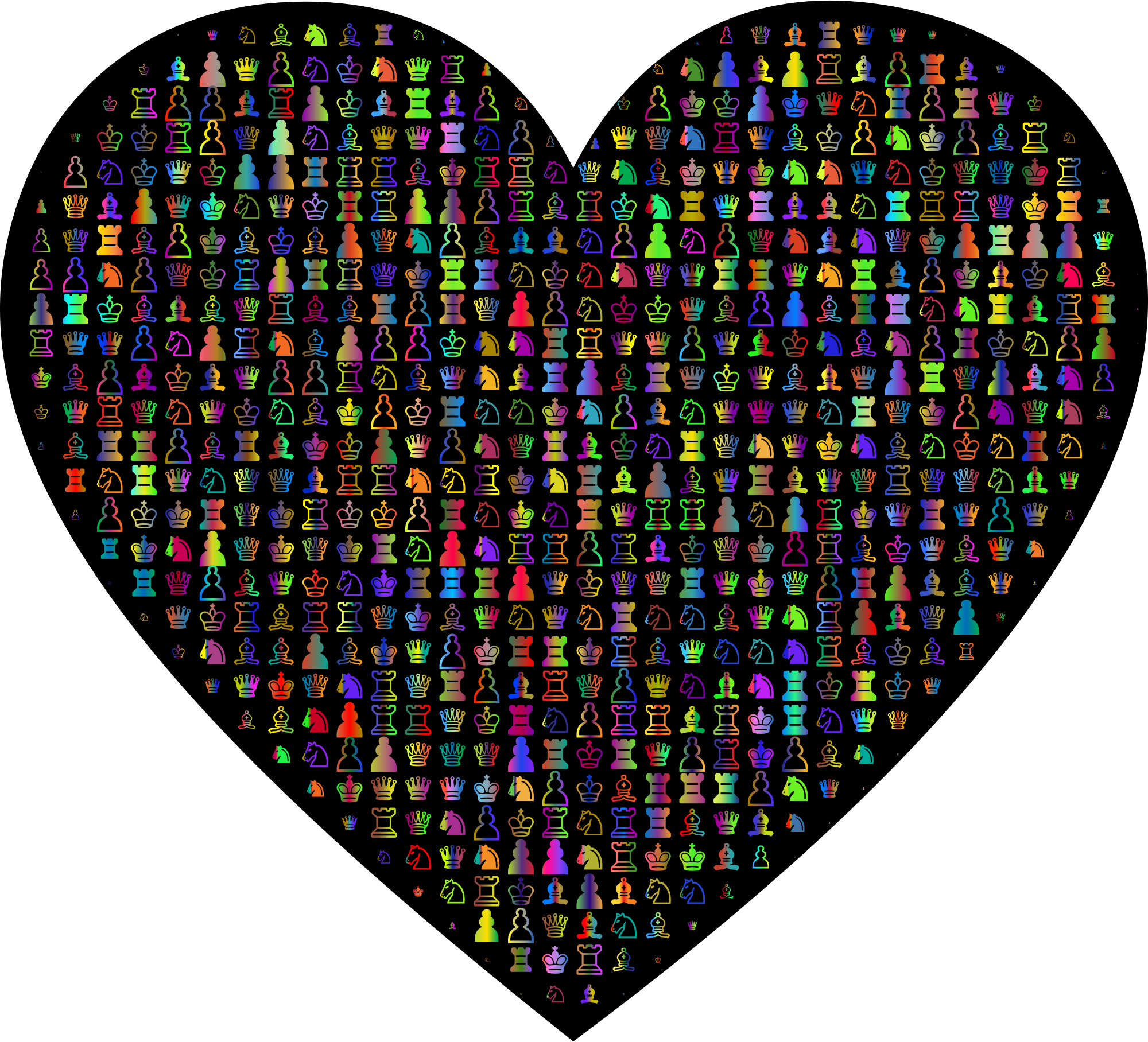 - Chess Heart Love Game Pieces Bishop King Knight Pawn Play Queen Rook Strategy Strategic Tactical Tactics Passion Valentine remix+24125 Colorful Prismatic Chromatic Rainbow
