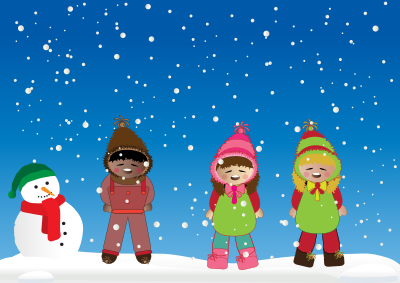 Snowy Scene with Kids