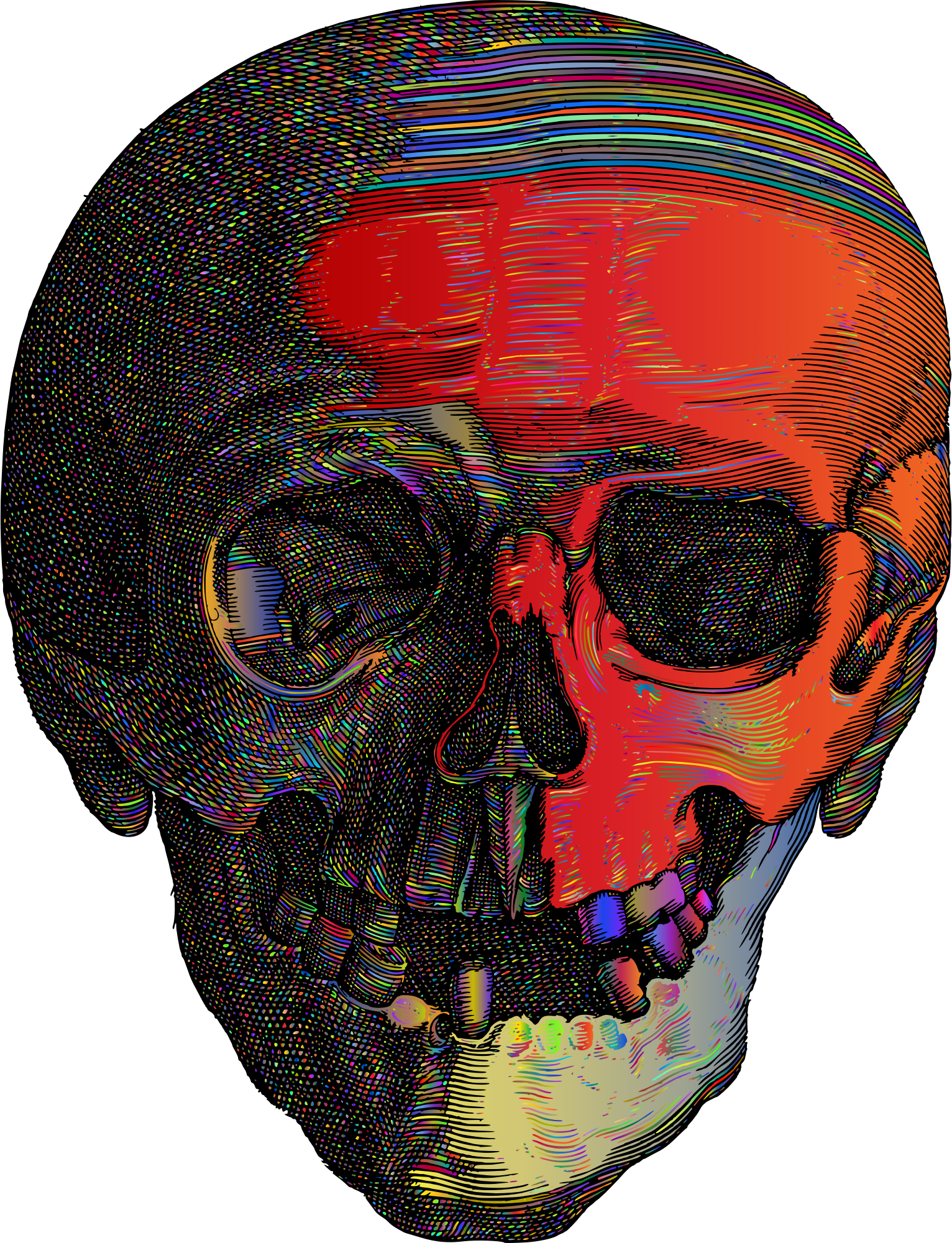 - Skull Death Head Dead Cranium Line Art Gothic Halloween Scary Spooky Tattoo Bones Evil Horror Macabre Colorful Prismatic Chromatic Rainbow Surreal Psychedelic