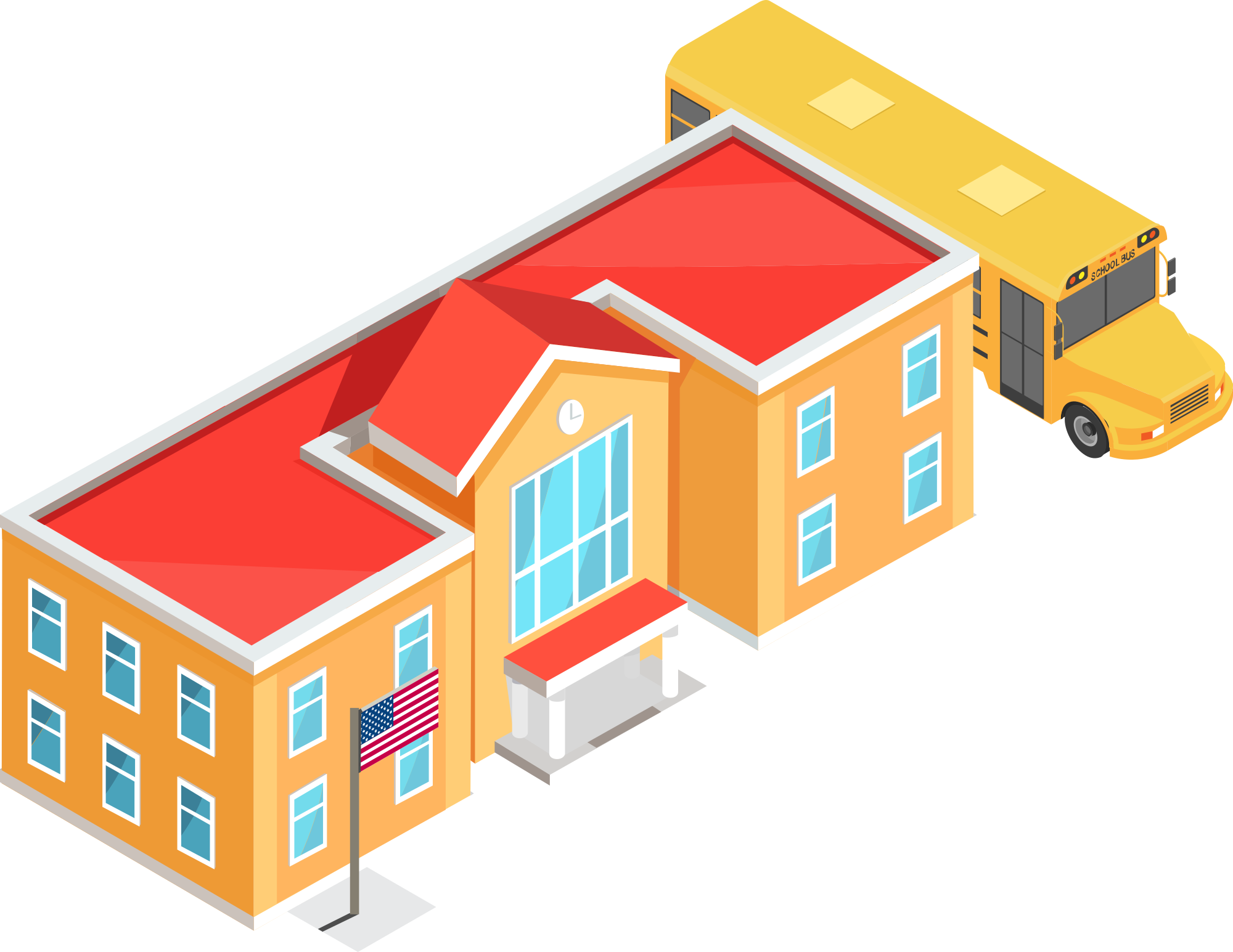 - remix+327129 American flag America USA school front building isometric EPA bus