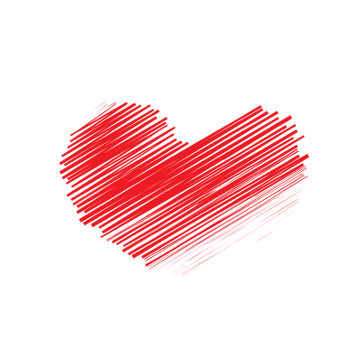 Silhouette of a red heart with scribble effect.