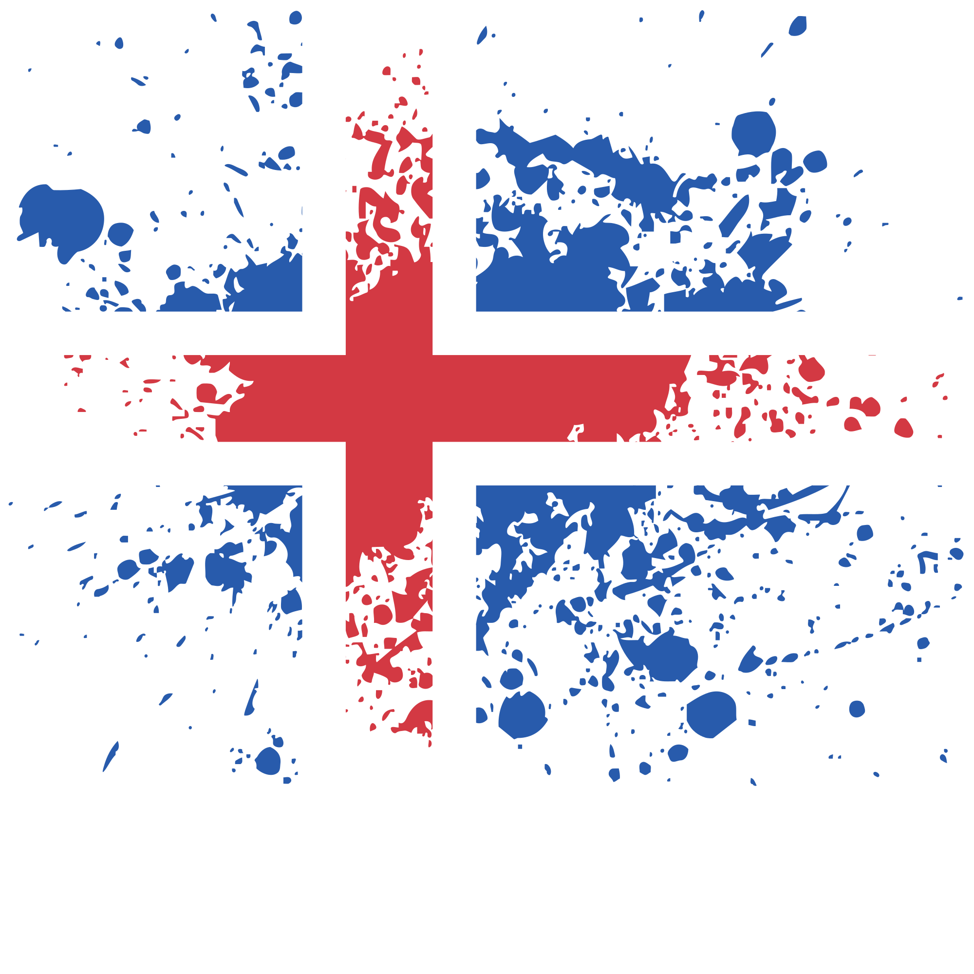 Icelandic flag paint splatter pattern
