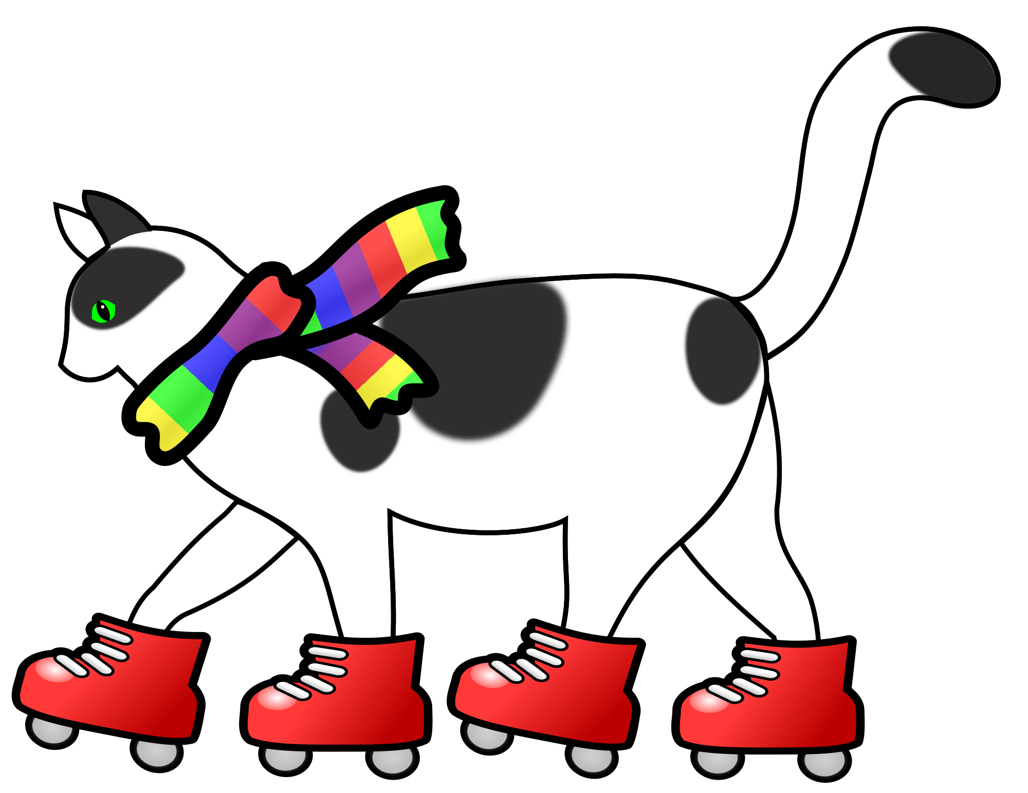 - roller skate skate skating cat feline cartoon wheel wheels funny motion scarf cool remix+9781 remix+109783 animal rollerskate