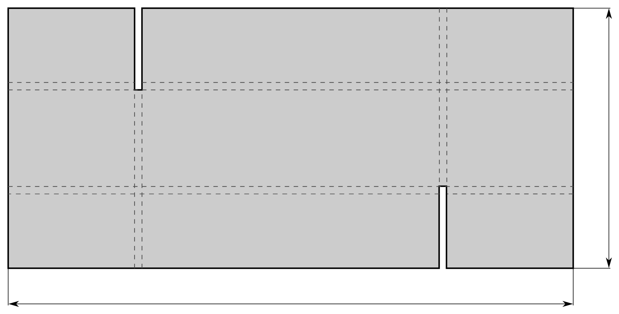 Dimensioned sketch unfolded cardboard box.