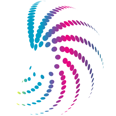 Spiral pattern with blue and purple dots.